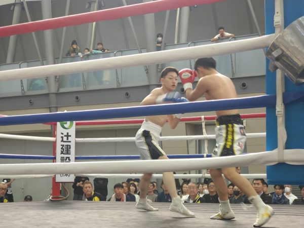 最終4ラウンドは、前半前に出ましたが左右ストレートをもらい、鼻血を出す展開で終了のゴング。