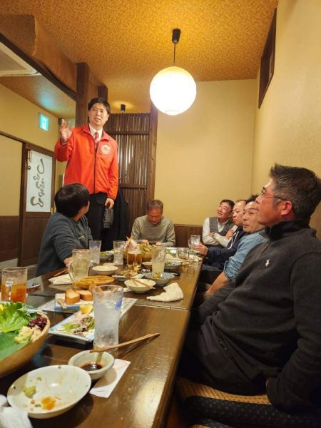 来賓には、自民党第8選挙区支部長の稲葉大輔さんが来られ、参加者と国政について議論を交わしました。