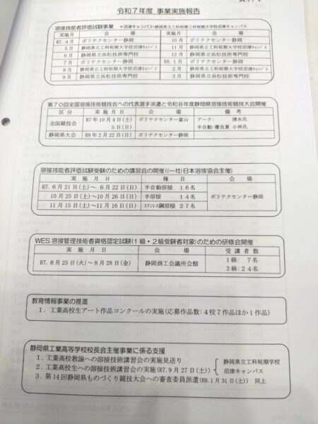令和8年4月23日(木)14時30分〜静岡市葵区ホテルグランヒルズ静岡に於いて、(一社)日本溶接協会指定機関 静岡県溶接工業協同組合 第3回理事会が開催されました。